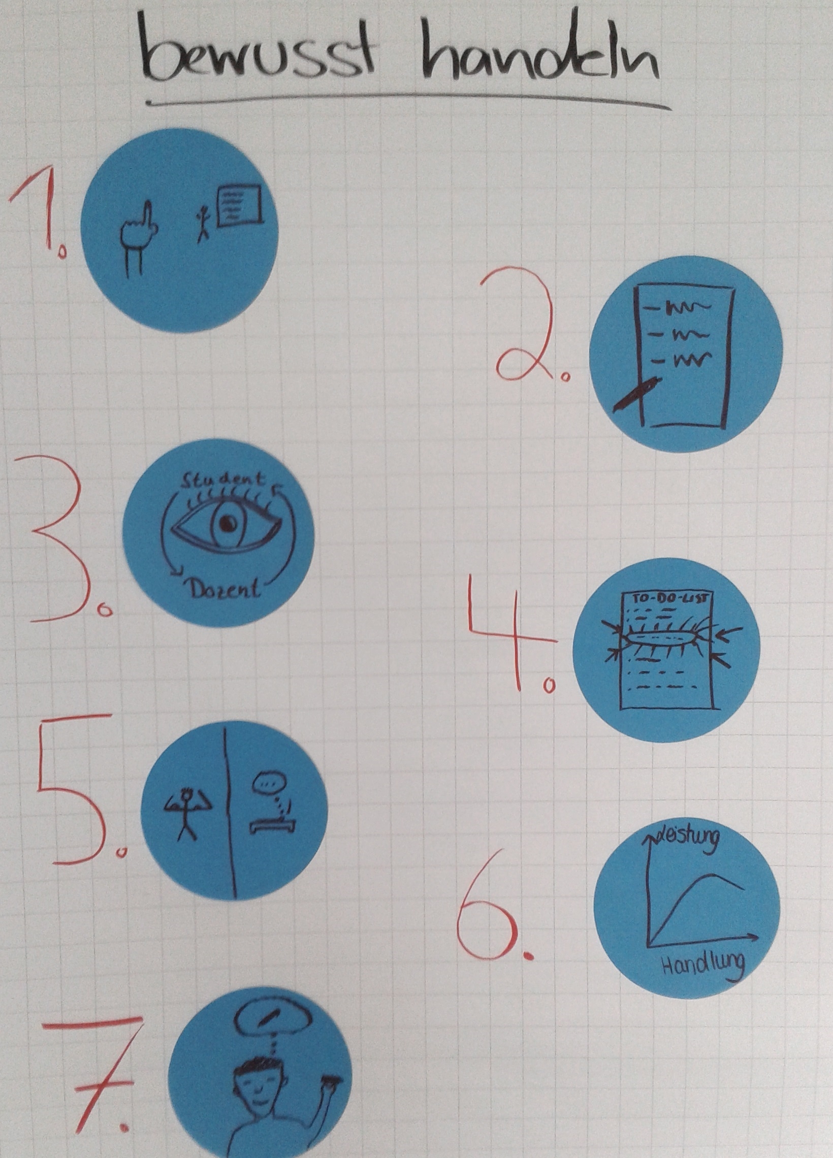 In einem ersten Schritt erfolgt ein theoretischer Input in Form geeigneter Materialien, die das selbstregulierte Lernen und dessen Umsetzung im Unterricht thematisieren. Die Förderung des selbstregulierten Lernens wird im Konkreten durch die Vermittlung einzelner Strategien sichergestellt (z.B. Zielsetzung, Zeitplanung, Selbstmotivation, Konzentration, kognitive Lernstrategien, Attribution) und ist modular aufgebaut.